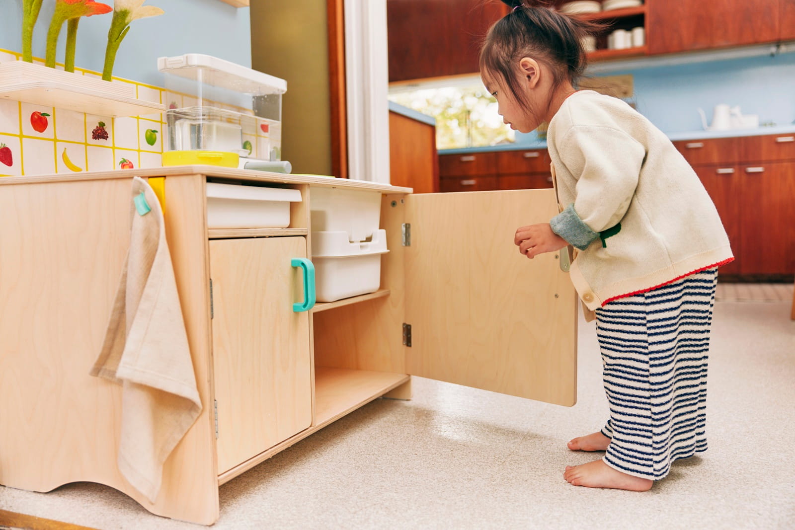 …sagt Jessica Rolph, Mitgründerin und CEO von Lovevery, einem Anbieter von Montessori-inspiriertem Spielzeug, und dreifache Mutter. „Wenn wir unsere Kinder die Knöpfe der Waschmaschine drücken, ihr eigenes Wasser einschenken und ihre Hände waschen lassen, lernen sie, in ihrer eigenen kleinen Welt zurechtzukommen. In der Montessori-Philosophie nennen wir das ‚Praktisches Leben‘.“